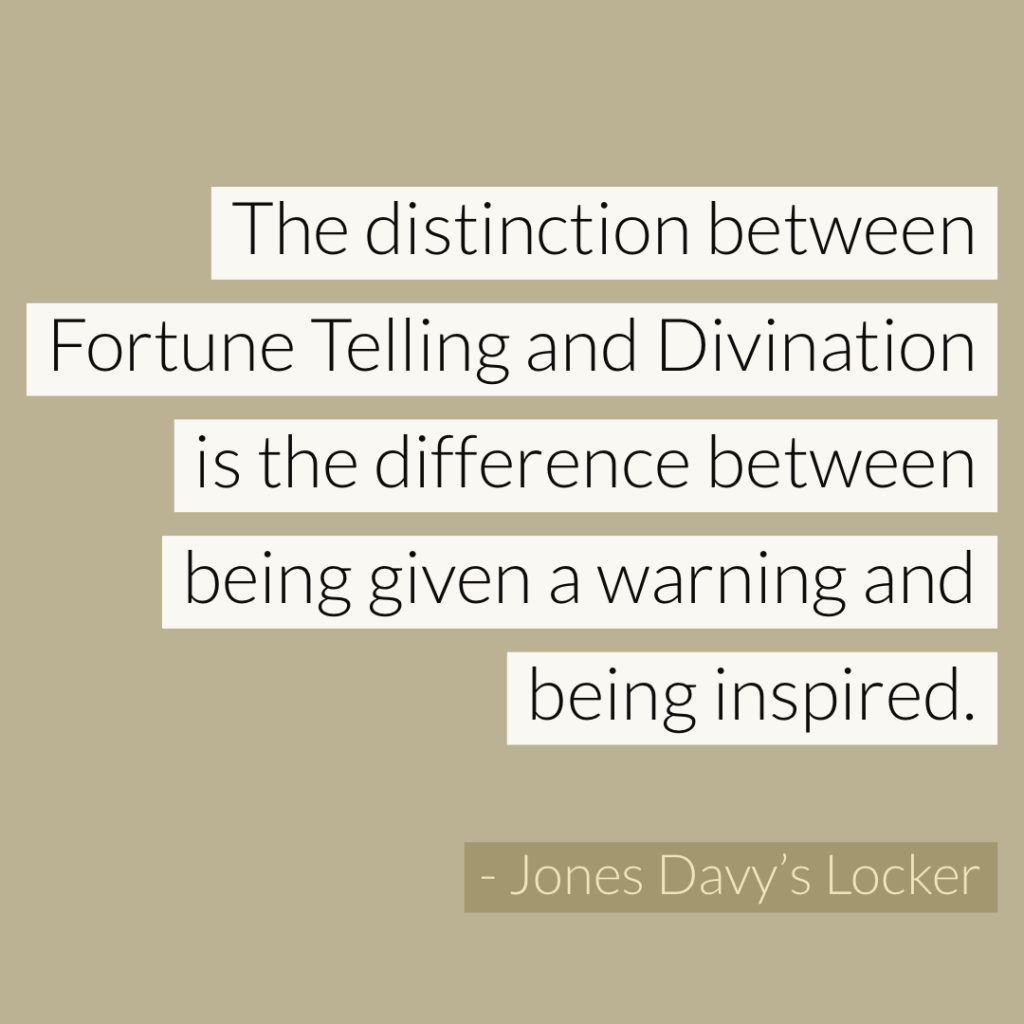 So at this point, the distinction between Fortune Telling and Divination is the difference between being warned or being told vs being inspired.