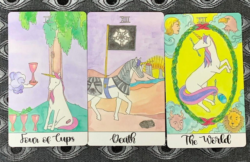 You see, I have bought a lot of decks over the 25 years that I’ve been into tarot. I have hunted down and obtained almost all of my unicorn decks (the masonic is my deck that’s got away). But then, I’ve had many of them sitting on my shelf collecting dust, unused and unloved.