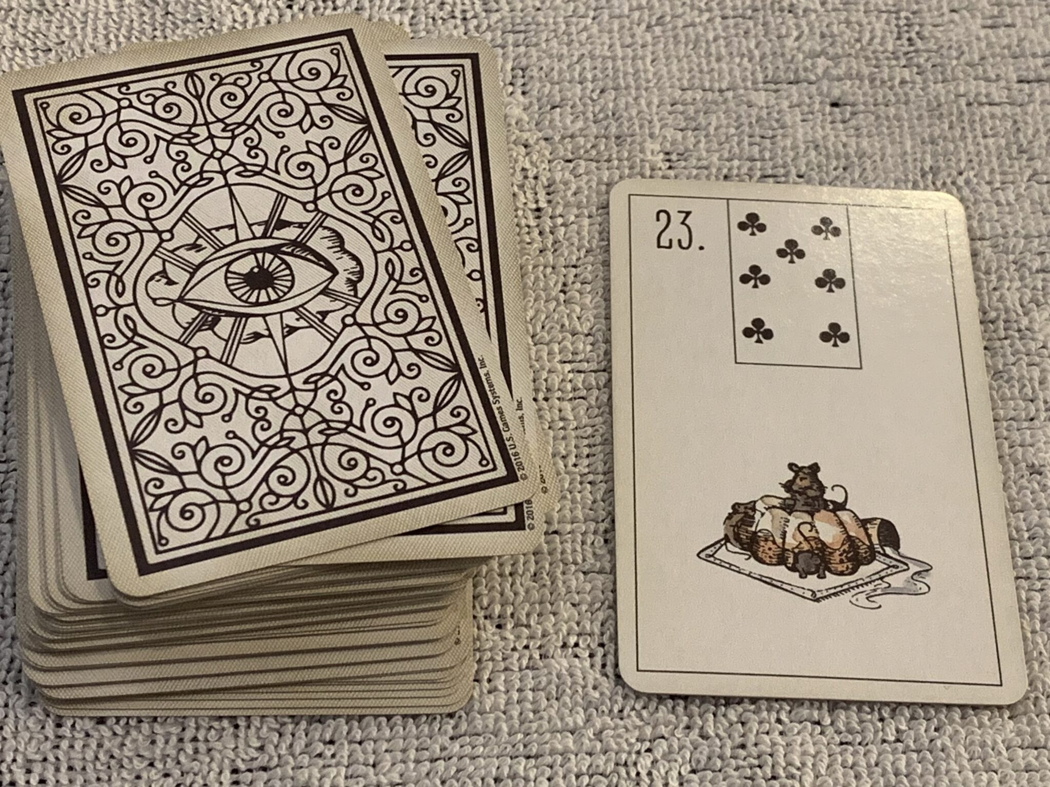 I also ‘right-size’ my other cartomancy decks. Over the last few days, I have had a bit of regret around the Whitman’s Old Gypsy Fortune Telling Cards being rehomed. But The Life Line Lenoracle, the Hermes Playing Card Oracle, and the Maybe Lenormand incorporate some of the cards and their concepts. These are ‘enough’ for me to get what I need.
