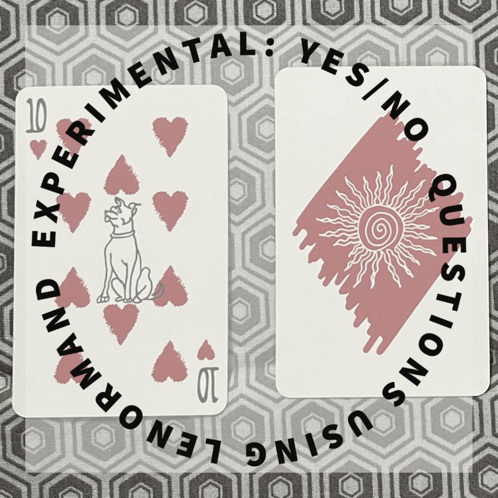MY FAVOURITE method is by Camelia Elias and she uses just two cards. All the details are in her YES/NO: LENORMAND 2-CARD post, but in essence you use two cards to get to a yes, no or a maybe. What you do is to combine the ‘primary vibes’ of the two cards to deduce if they the overall feeling is positive or negative or meh. The important bit if when applying what the description of the cards says to the question. The feel of positive or negative can only been fond in the context of the question not just the cards themselves.