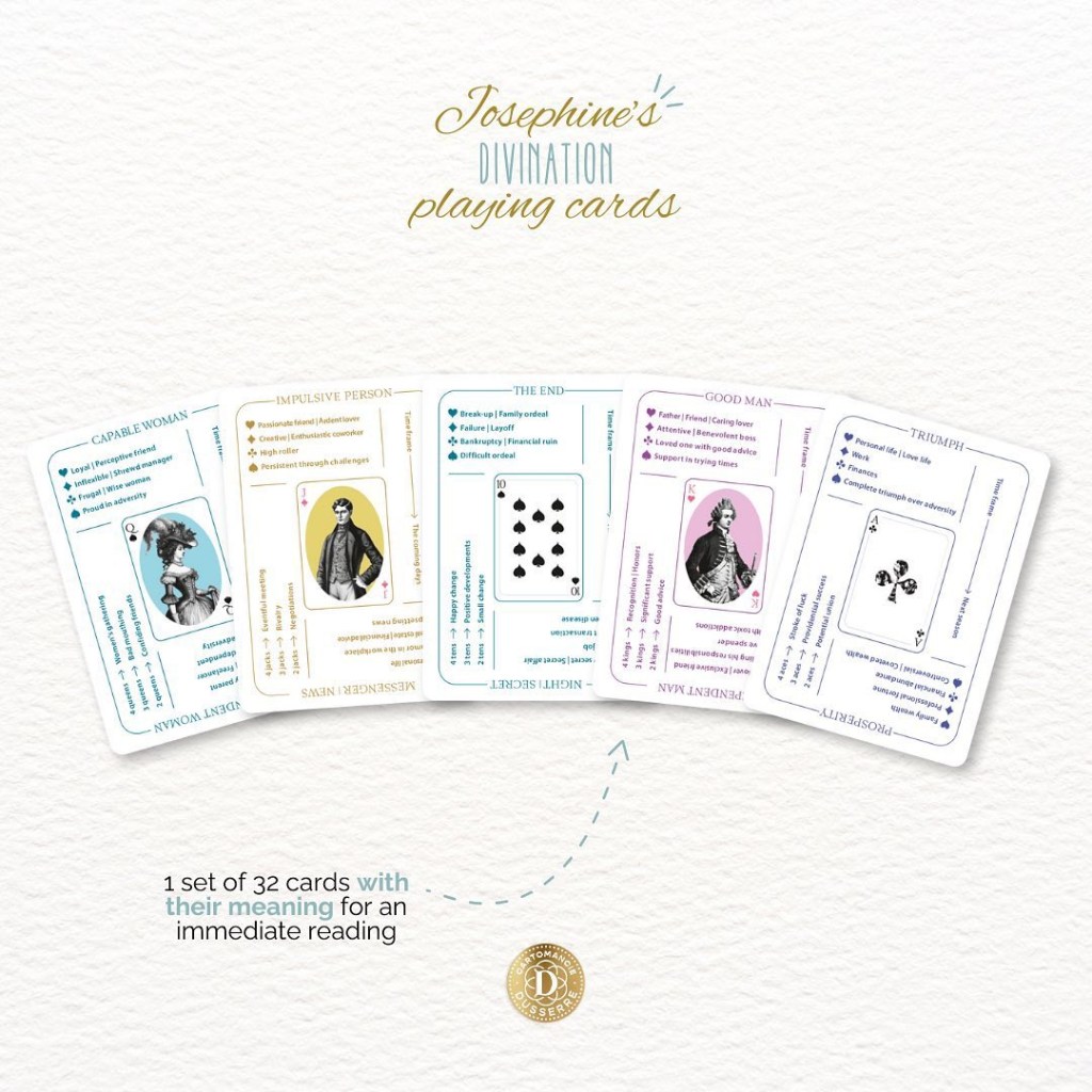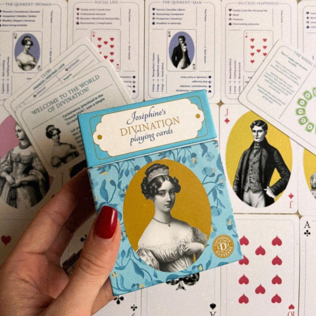 I got quite excited seeing that Grimaud has released (via their Dessurre brand) two new English language cartomancy decks: Joséphine’s Divination Playing Cards and The Parisian Sibyl