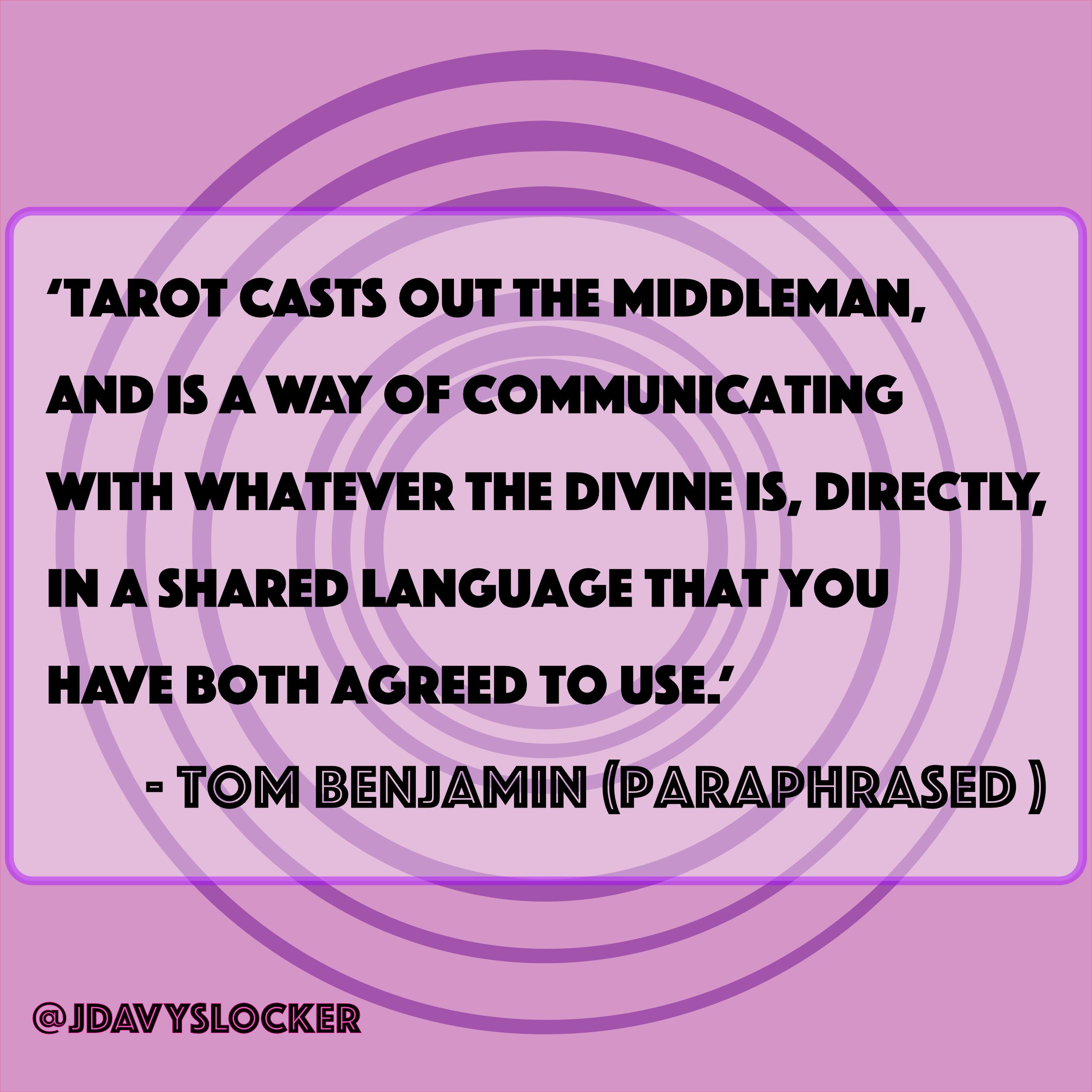You’ve ‘cast out the middleman’ and selected a method for your communication. It doesn’t matter if it’s Tarot, Lenormand, ordinary playing cards, or a system you’ve made up on the spot; the divine will try to answer using the tool you’ve made available.